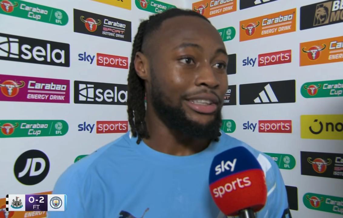 英联杯半决赛首回合,曼城客场2-0击败纽卡,此役打入一球的塞门约赛后接受了天空体育的采访。